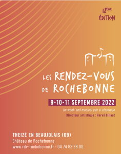 Érigé au cœur du Pays des Pierres Dorées et surplombant les vignes du Beaujolais, le château de Rochebonne est devenu le cadre indissociable du festival depuis sa création.